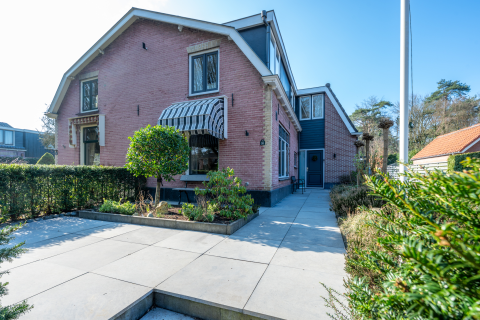 De achtertuin is een fijne, beschutte plek met veel groen, fleurige borders, gras en meerdere terrassen. Hier geniet je in alle privacy van de zon en natuur.